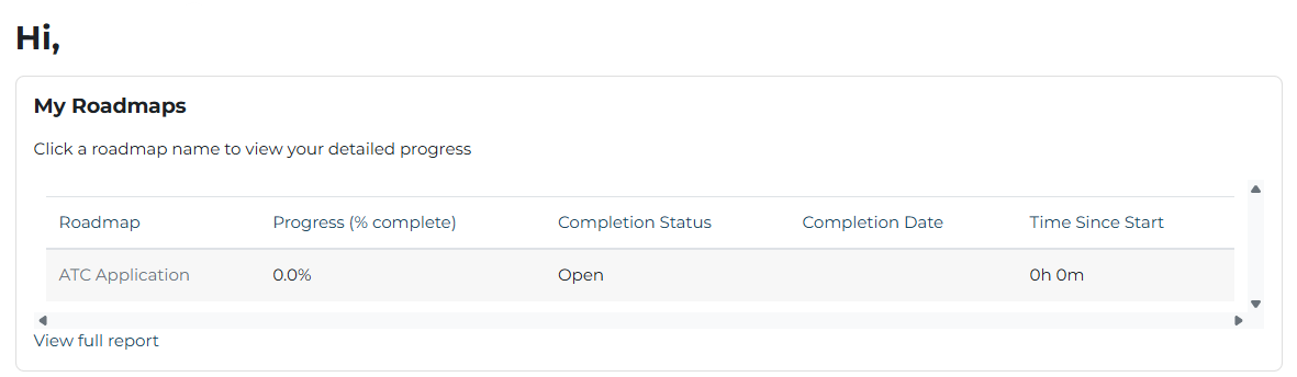 - The Roadmap page will display, showing your progress through each of the modules in the roadmap.